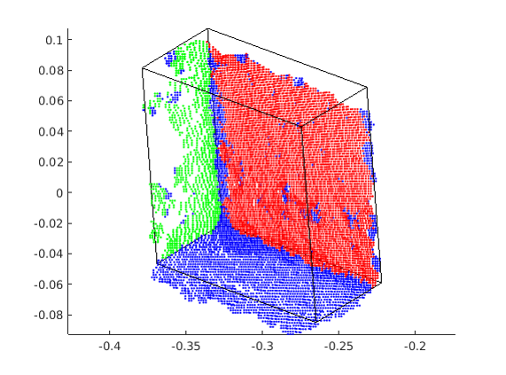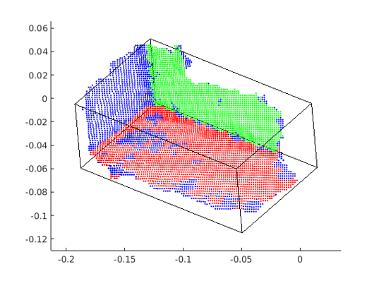 matlab源码要回实验室了再上传到博客,c++上只做了分割后得到结果的位姿估计,matlab上有将一个物体分成多个面然后再进行位姿估计,也用matlab随机生成数据,验证了该方法的正确性,好吧,这当然是正确的,我又too young too simple了。