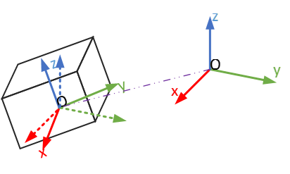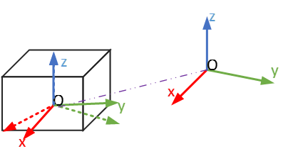 由于已经知道了各个面的组成信息,首先选择最大面,计算得到对应的法向量,使其作为物体的z轴向量,进而选择次大面,计算得到对应的法向量,使其为物体的y轴向量,进而对其进行一系列的旋转平移操作,完成物体的尺寸和位姿变换关系的计算: